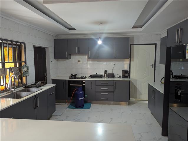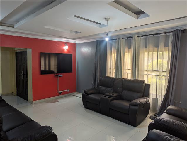 The master bedroom is self-contained, providing privacy and convenience. The property sits on 1,755 square meters of well-landscaped grounds with a lush green lawn. Borehole, and a reserve water tank ensuring constant water supply. It is fully enclosed by a perimeter wall fence topped with electric wire for added security. Includes a double garage accommodating two vehicles.